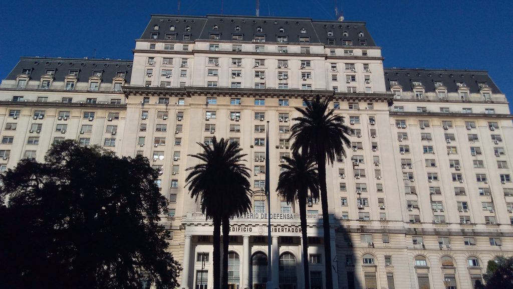 El domicilio legal del lugar figura en Azopardo 250 —en el barrio de Monserrat de la Ciudad de Buenos Aires—, pero lo cierto es que la mejor vista de esta mole de cemento se obtiene desde la avenida Paseo Colón, a pocos metros y casi enfrente de la sede del Poder Ejecutivo de la República Argentina. Estando en esa avenida, ya sea desde un colectivo que circule por el Metrobús o simplemente caminando, se podrán apreciar, entre otras cosas, dos enormes y elocuentes carteles: uno que detalla su nombre y otro que especifica su función, que es ser la sede del Ministerio de Defensa de la Nación.